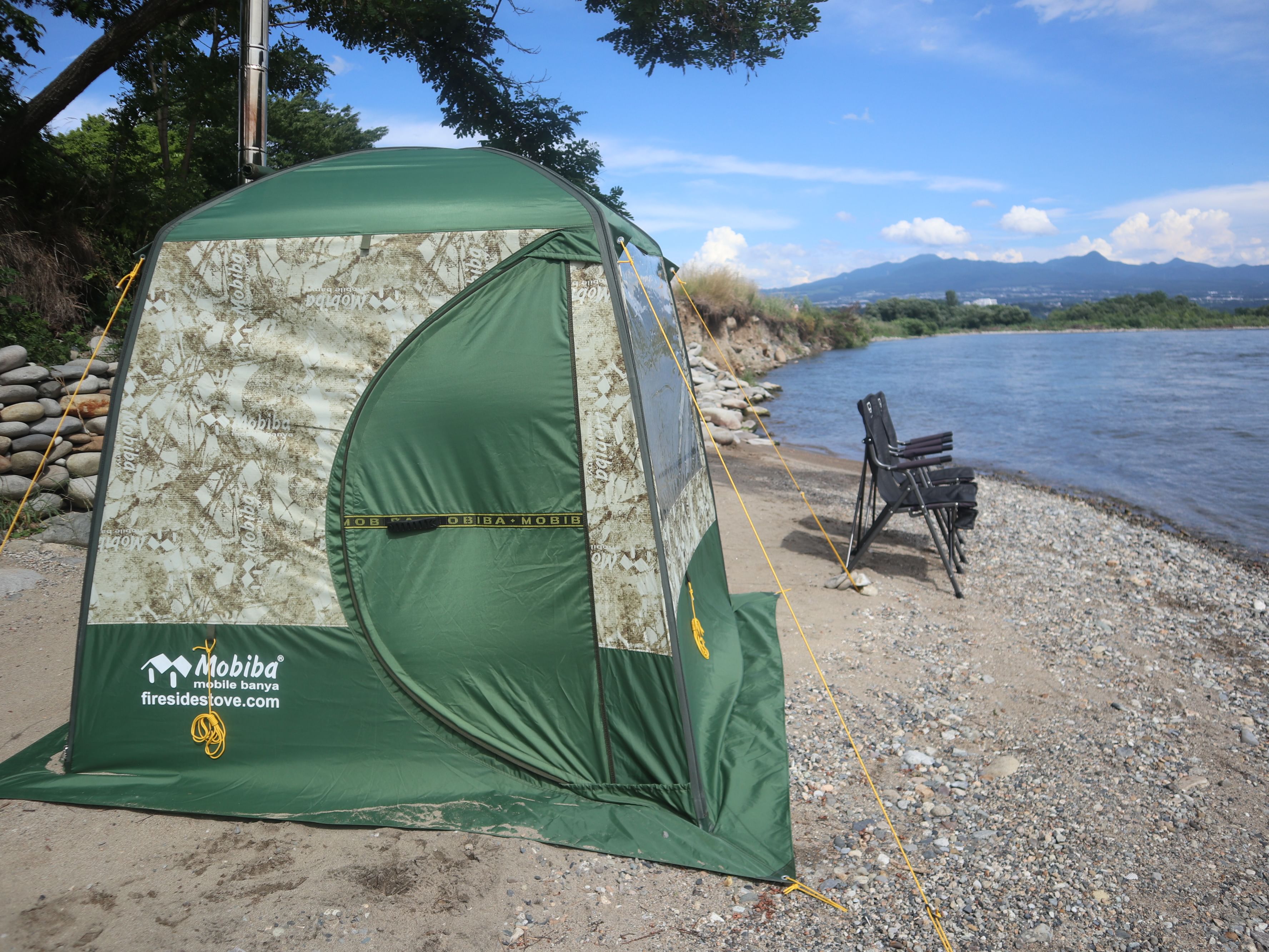サウナ&BBQ :12:15 サイクリングゴール ~川岸で薪ストーブのテントサウナ&BBQ~